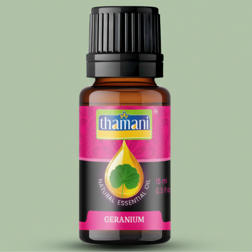 Premium 15ml Geranium Oil extracted from fresh geranium leaves, ideal for wellness, beauty, and home fragrance