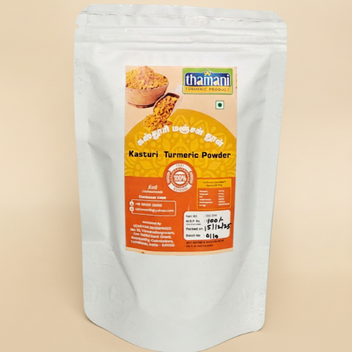 Finely ground 100gm Kasthuri Turmeric Powder crafted from premium roots, ideal for skincare and traditional wellness.